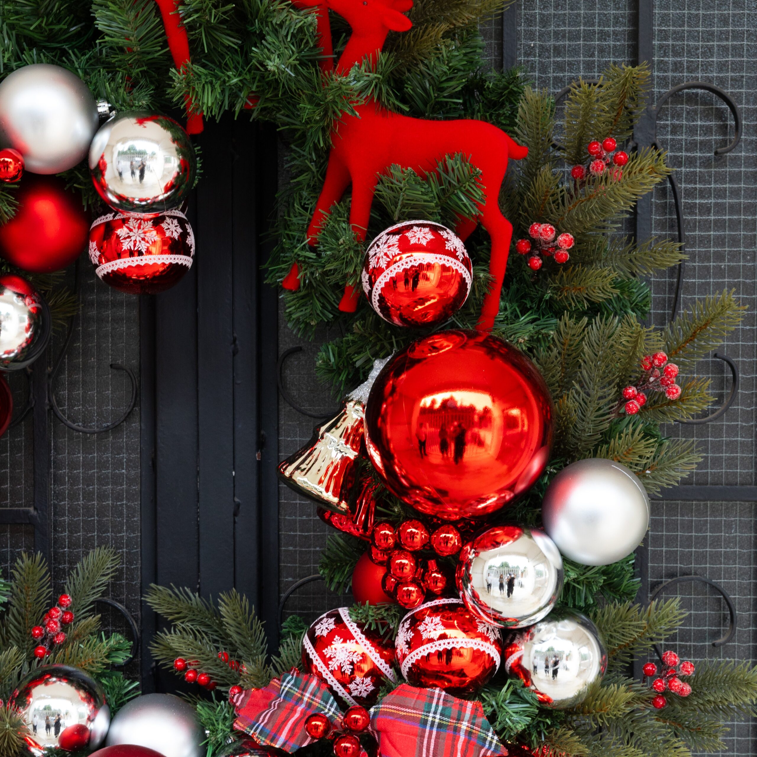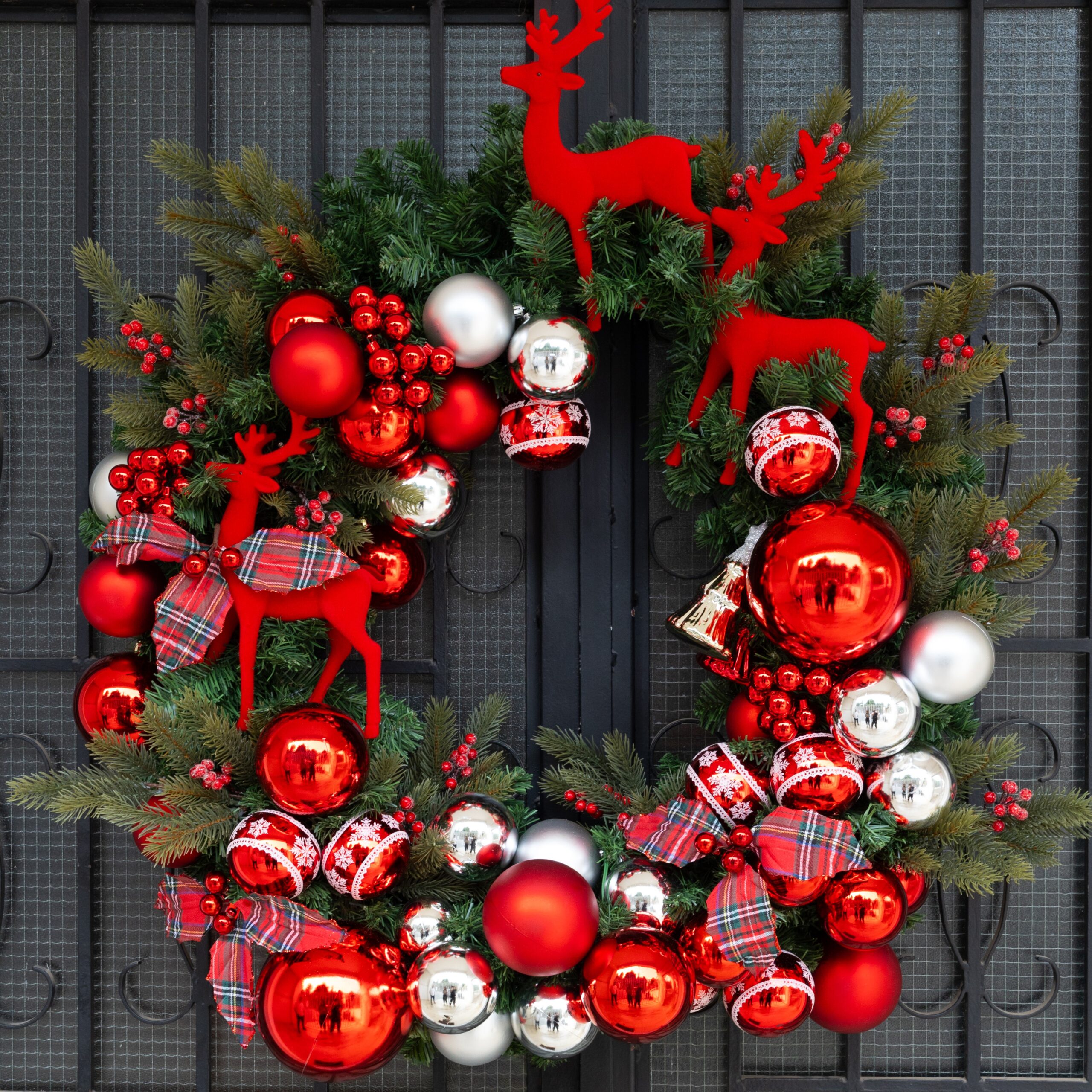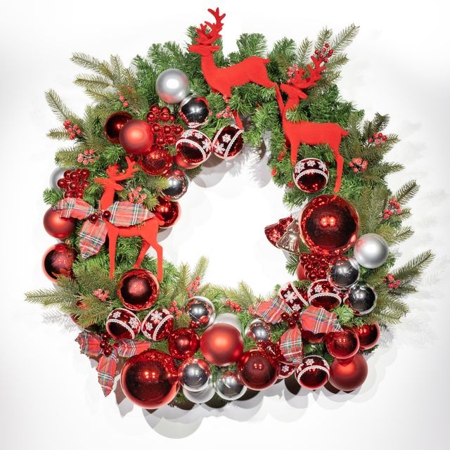 Description The Christmas Classic wreath. Celebrate timeless holiday charm with The Christmas Classic wreath. Featuring adorable felt red reindeers and elegant classic baubles nestled in lush greenery, this wreath blends traditional festive style with playful, cozy accents. Perfect for creating a warm, inviting holiday atmosphere in any space.