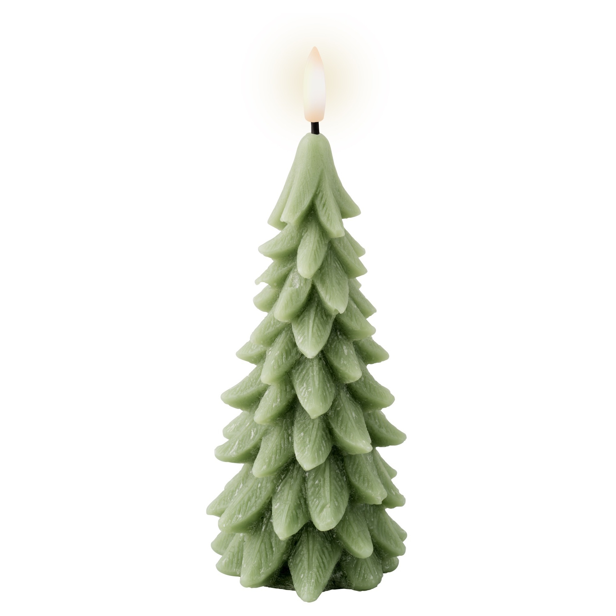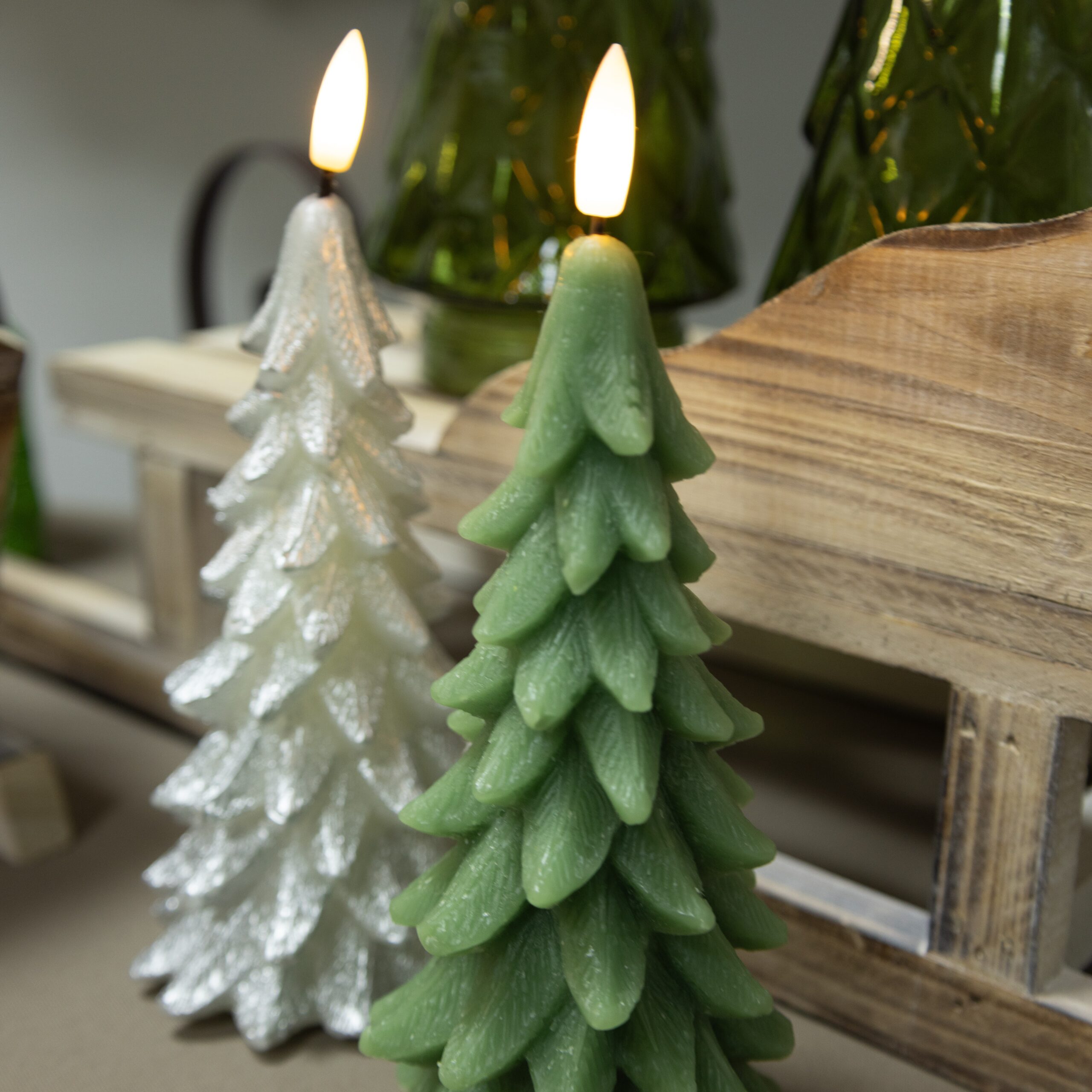 Description Green Christmas tree-shaped LED candle with steady wick effect flame. Warm white. Battery operated with timer.Bring a warm, festive glow to your home with our Tree-Shaped LED Candle. Designed to resemble a classic holiday tree, this candle creates a cozy ambiance without the worry of an open flame. Perfect for mantels, tabletops, or as part of a centerpiece, it’s a safe and stylish way to add holiday charm to any space.