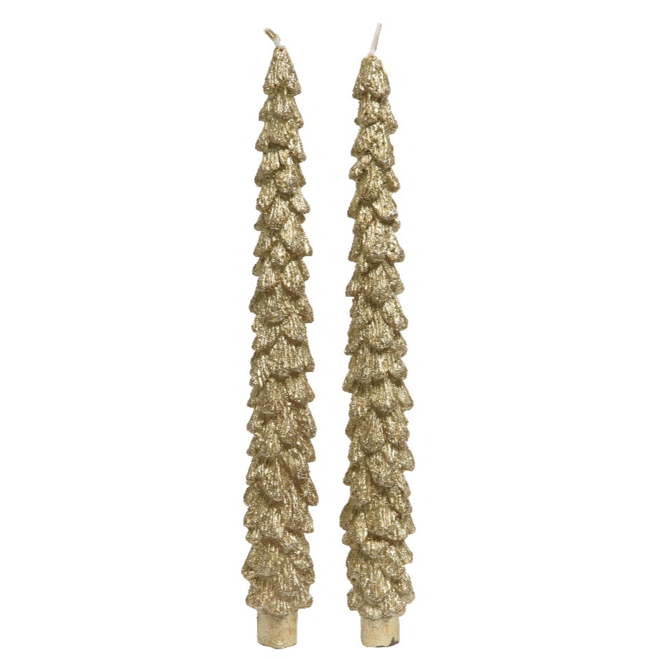 Description Set of gold glitter candle trees.Bring festive sparkle and warmth to your holiday décor with these Holiday Gold Tree-Inspired Candles. Finished in shimmering gold, they create a cozy, elegant ambiance for tables, mantels, or holiday displays. Perfect for gifting or adding a luxurious touch to your seasonal décor, these candles are a standout festive accent.