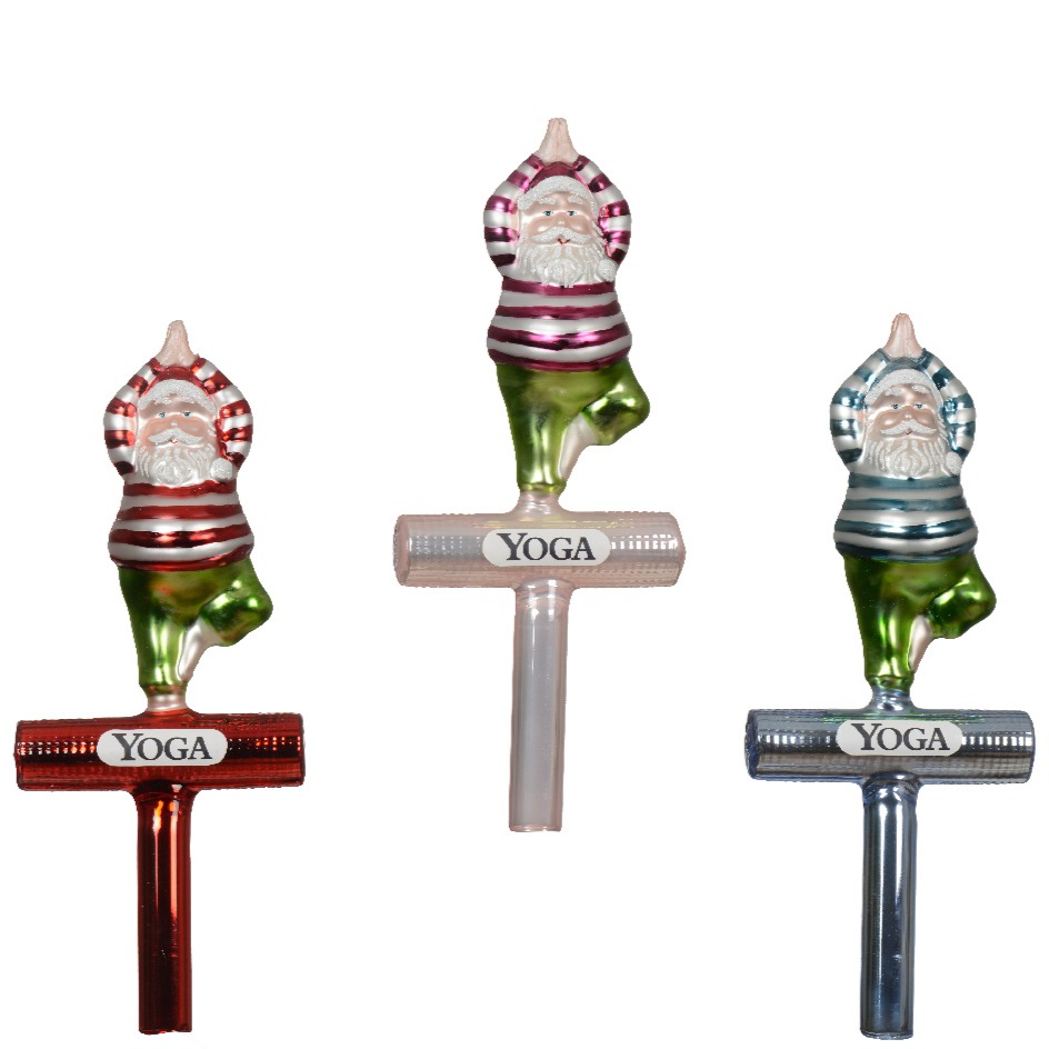 Description Yogi shaped Santa treetopper (red/blue/pink).Bring a playful twist to your holiday décor with our Santa Yogi Tree Topper. Featuring Santa in a yoga pose, this whimsical topper adds personality and charm to your Christmas tree. Perfect for creating a fun, festive focal point, it’s a delightful conversation starter and makes a unique gift for anyone who loves holiday cheer with a twist.