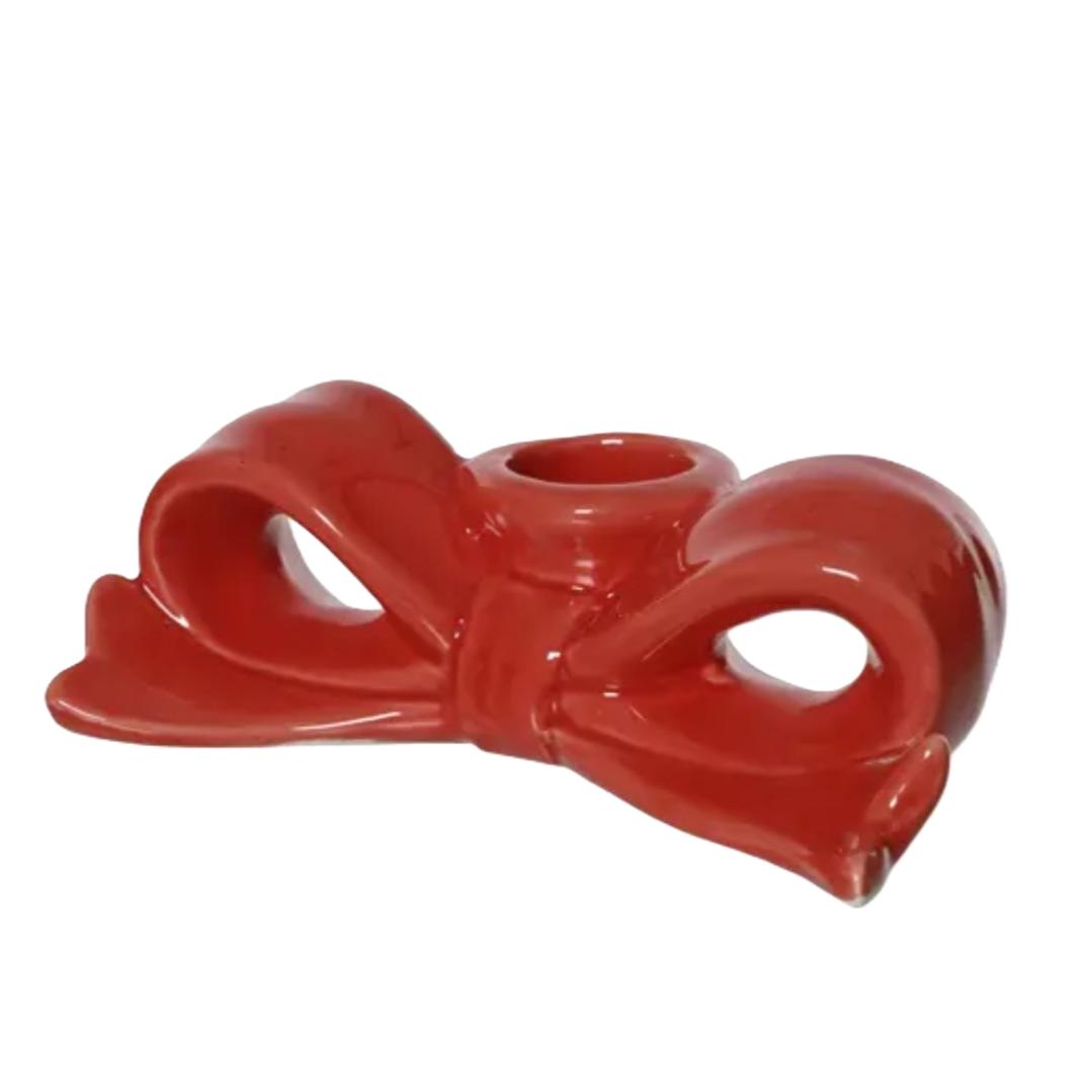 Description Red bow-shaped candleholder.Add a touch of festive elegance to your holiday décor with our Ribbon Bow Candleholder. Featuring a beautifully crafted ribbon bow design, this candleholder adds charm and sophistication to mantels, tables, or holiday centerpieces. Perfect for creating a warm, inviting ambiance or as a thoughtful gift, it’s a stylish accent for any seasonal setting.